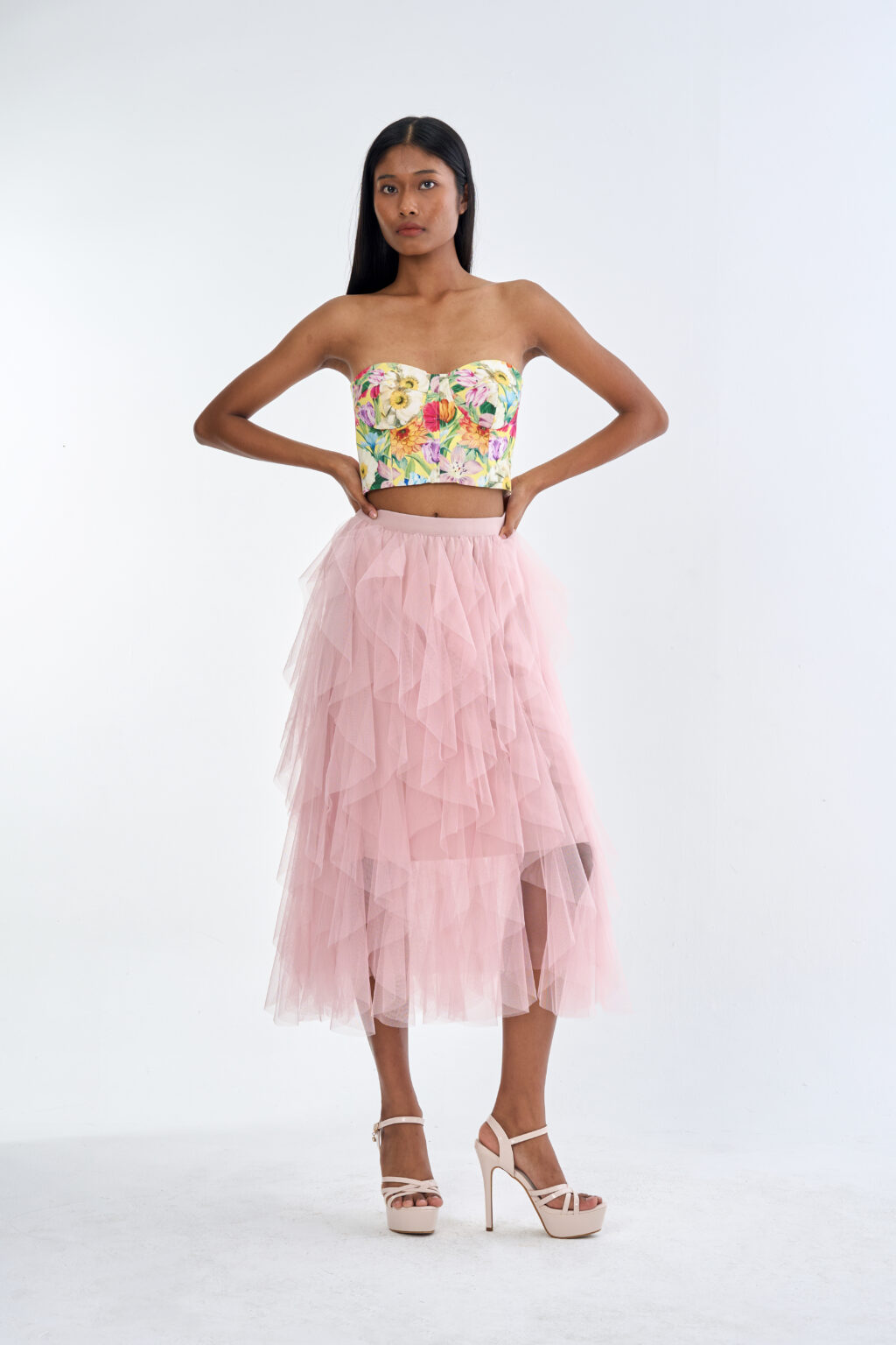 Secret Garden Floral Corset Top with Pink Romance Layered Tulle Skirt