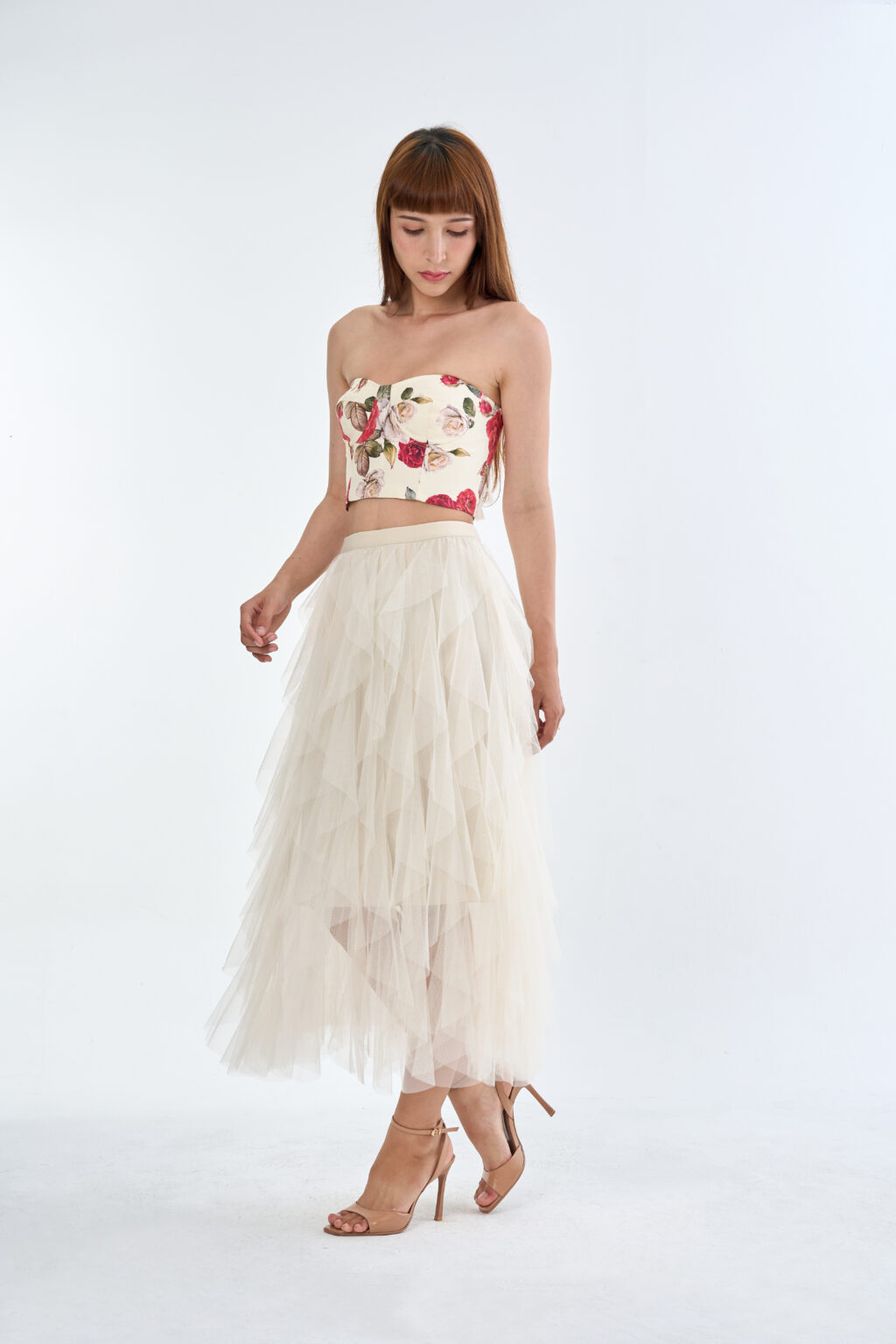 Vintage Rose Corset Top with Ivory Dream Layered Tulle Skirt