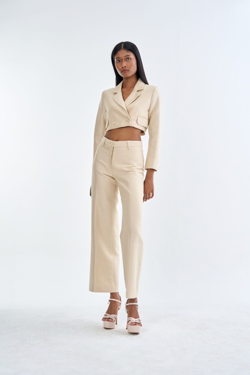 Beige Tailored Crop Suit with Long Pants