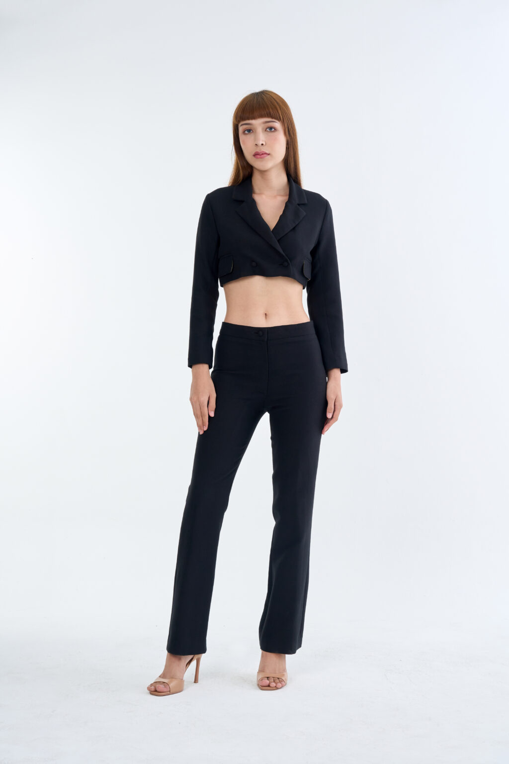 Black Tailored Crop Suit with Long Pants